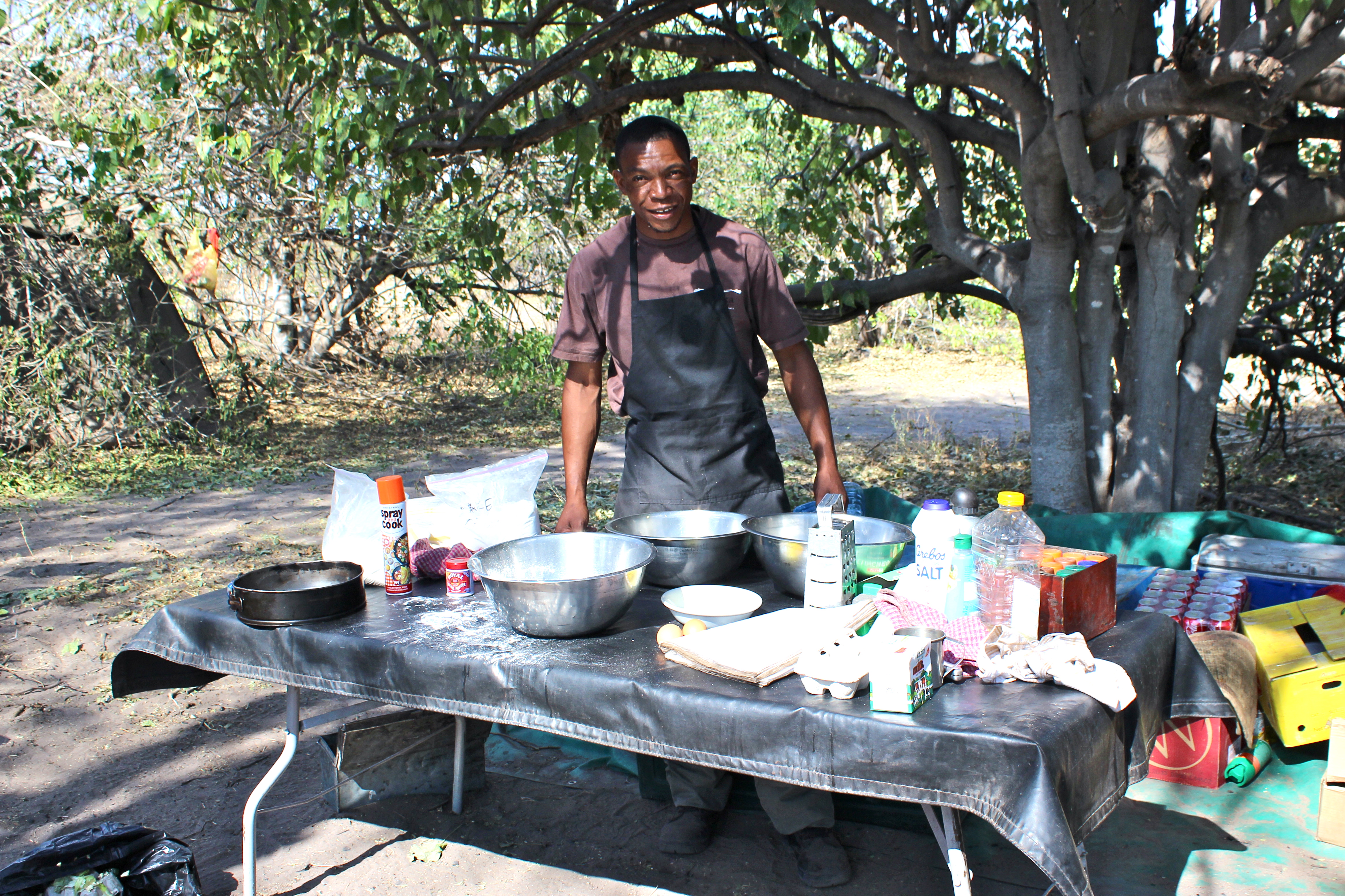 It turned out Pula, which means Money and Rain in Setswana, is a passionate cook and wants to cook in a big lodge one day. He also wants to go to cookery school and have a real diploma. I asked if he needed any help and he said to come back the next day. Armed with my camera, I arrived the next day for my first bush cookery class. The plan was to make a lemon drizzle cake for our afternoon snack. Yes, a lemon drizzle cake in the bush, with elephants constantly trying to get closer to the acacia trees protecting the kitchen from the African sun.
