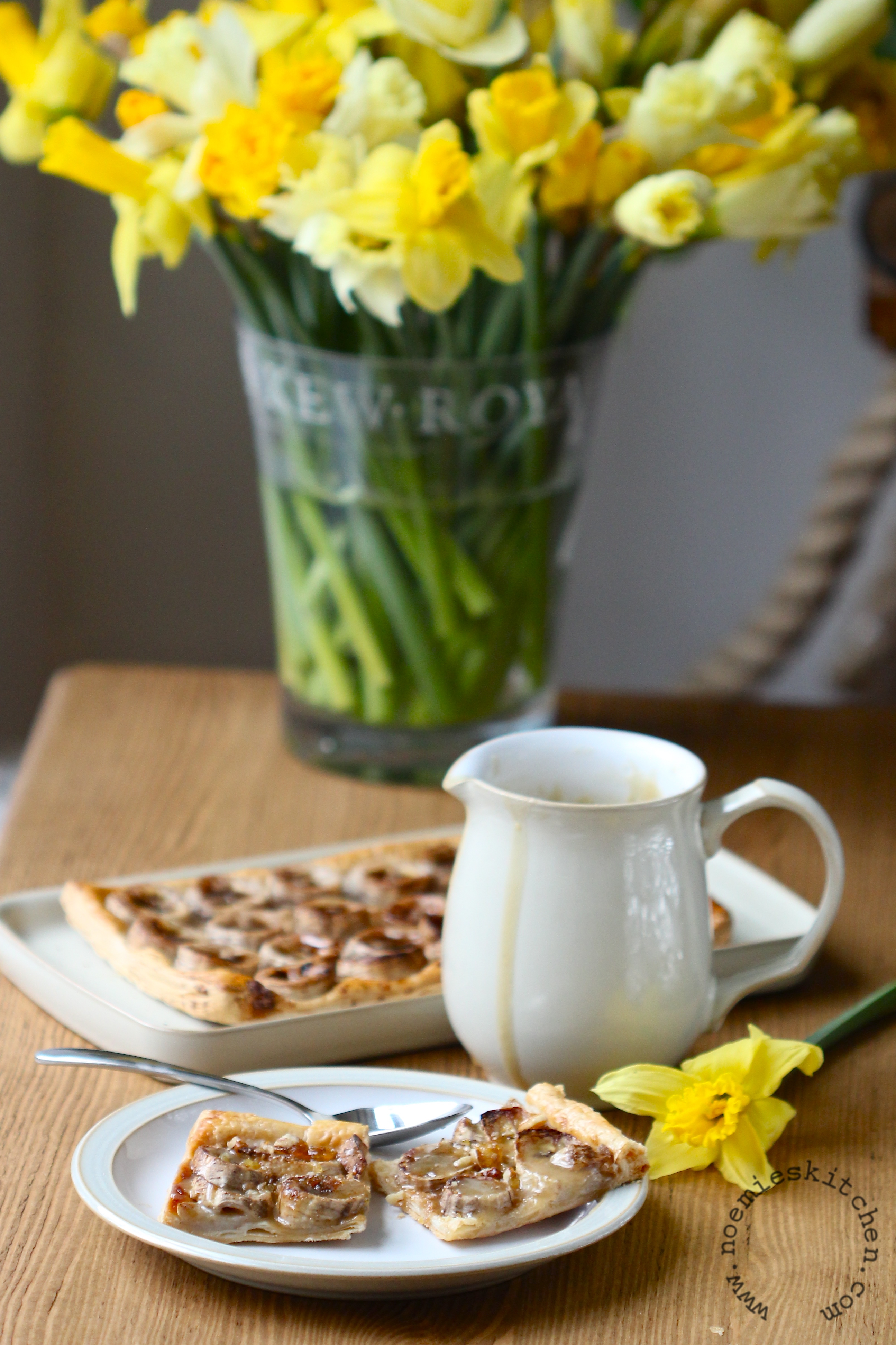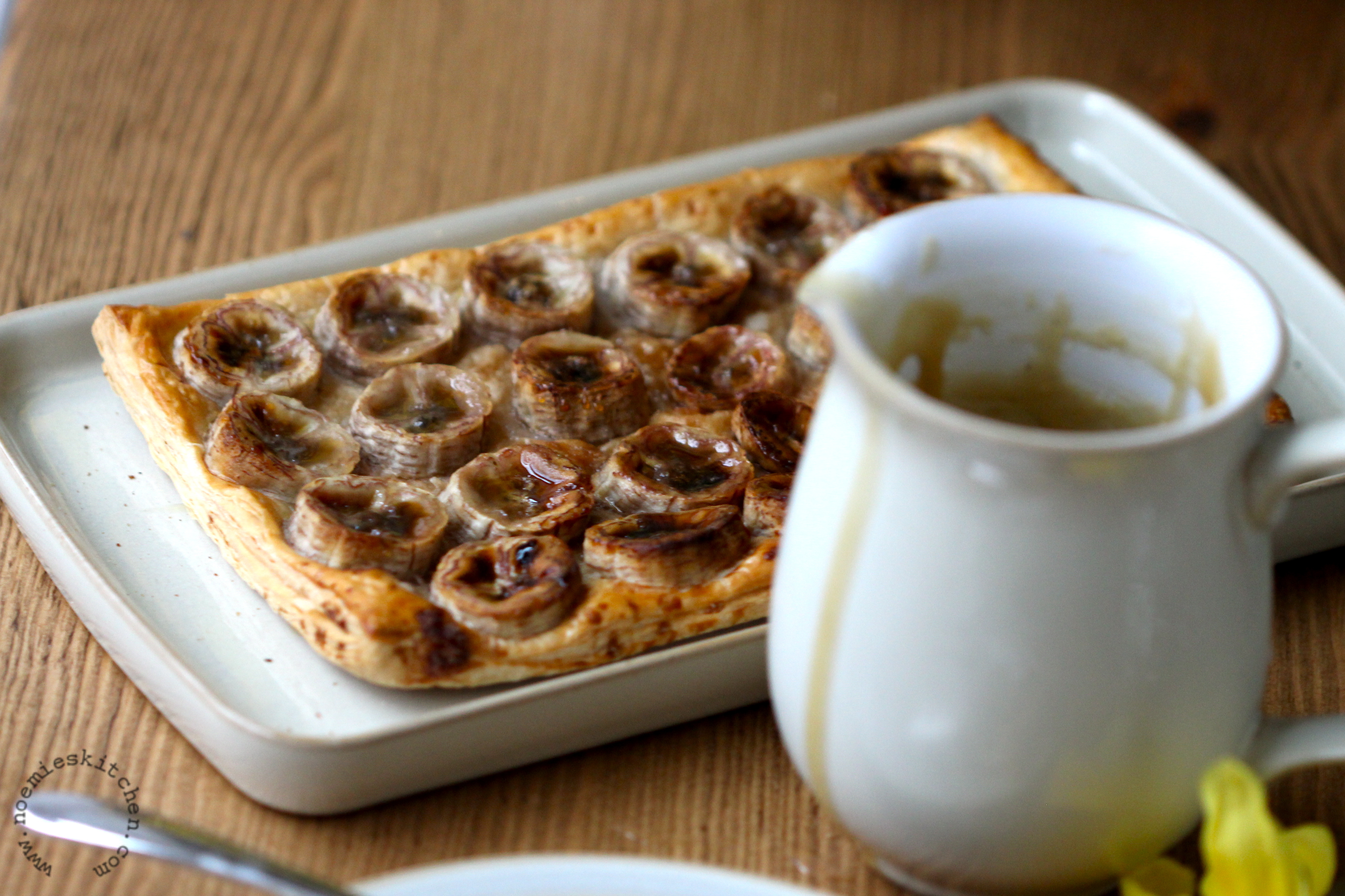 This dessert came to me while watching Professional Masterchef. None of the candidates this year used combinations as simple as banana, caramel and pecan nuts of course, and there was not enough time for them to whizz up a puff pastry, but somehow their creativity and passion inspired me. It is very simple to make and you really need to give this a go to impress your friends. It is great as a dessert, or for tea, and can be enjoyed all year long as long as you can find ripe bananas!