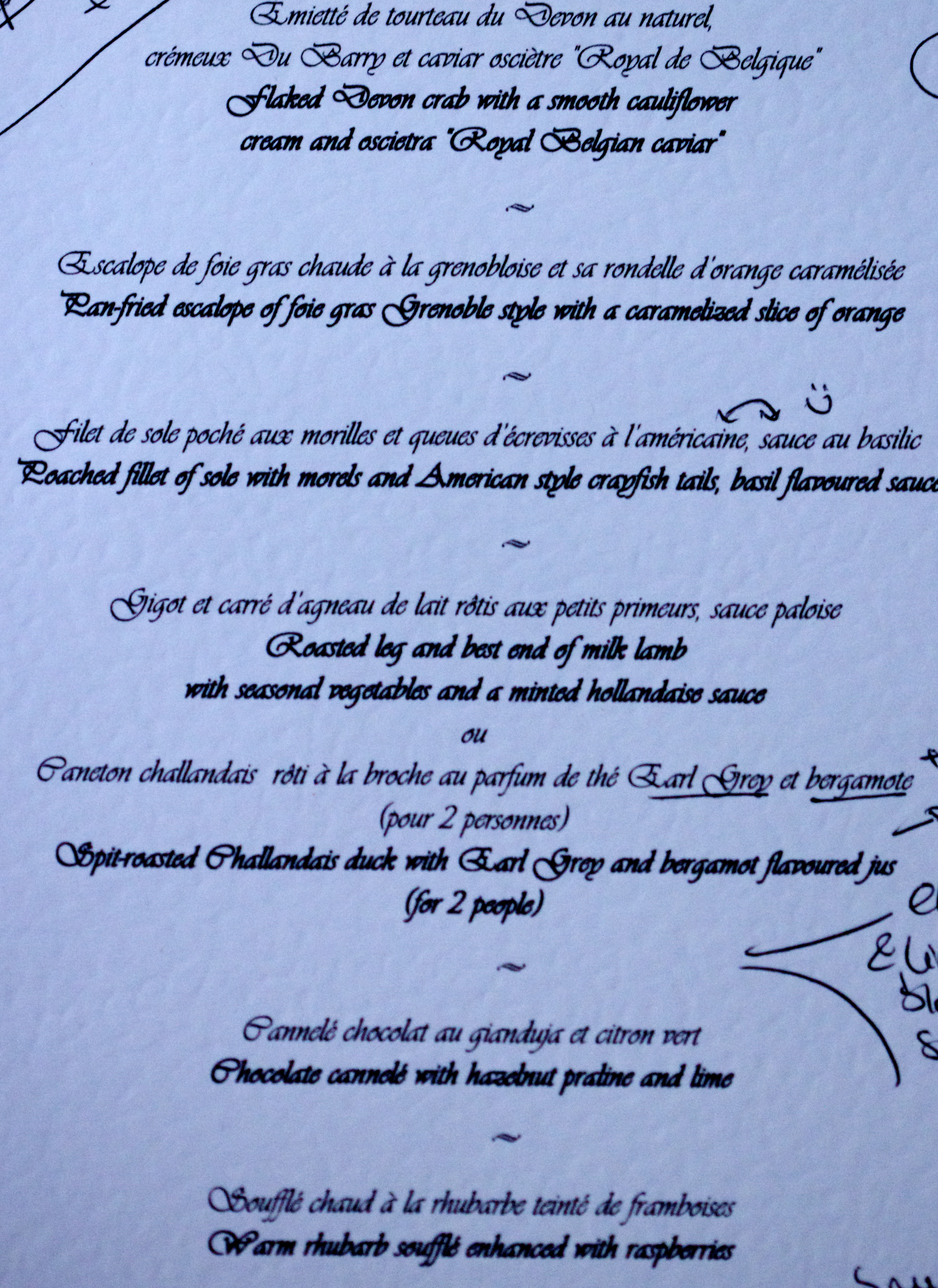 No photos or videos were allowed so this is a copy of the ‘Menu d’Excellence’ we had, along with the incredible paired wines. And some photos of my favourite tree in bloom in South of England at the moment that you can see everywhere in the lovely town of Bray. Most people don’t go to Bray for the countryside though, but for some of the best restaurants in the world. With 3 Michelin stars for over 20 years, the Roux family has created a chef d’oeuvre of classic French gastronomy.