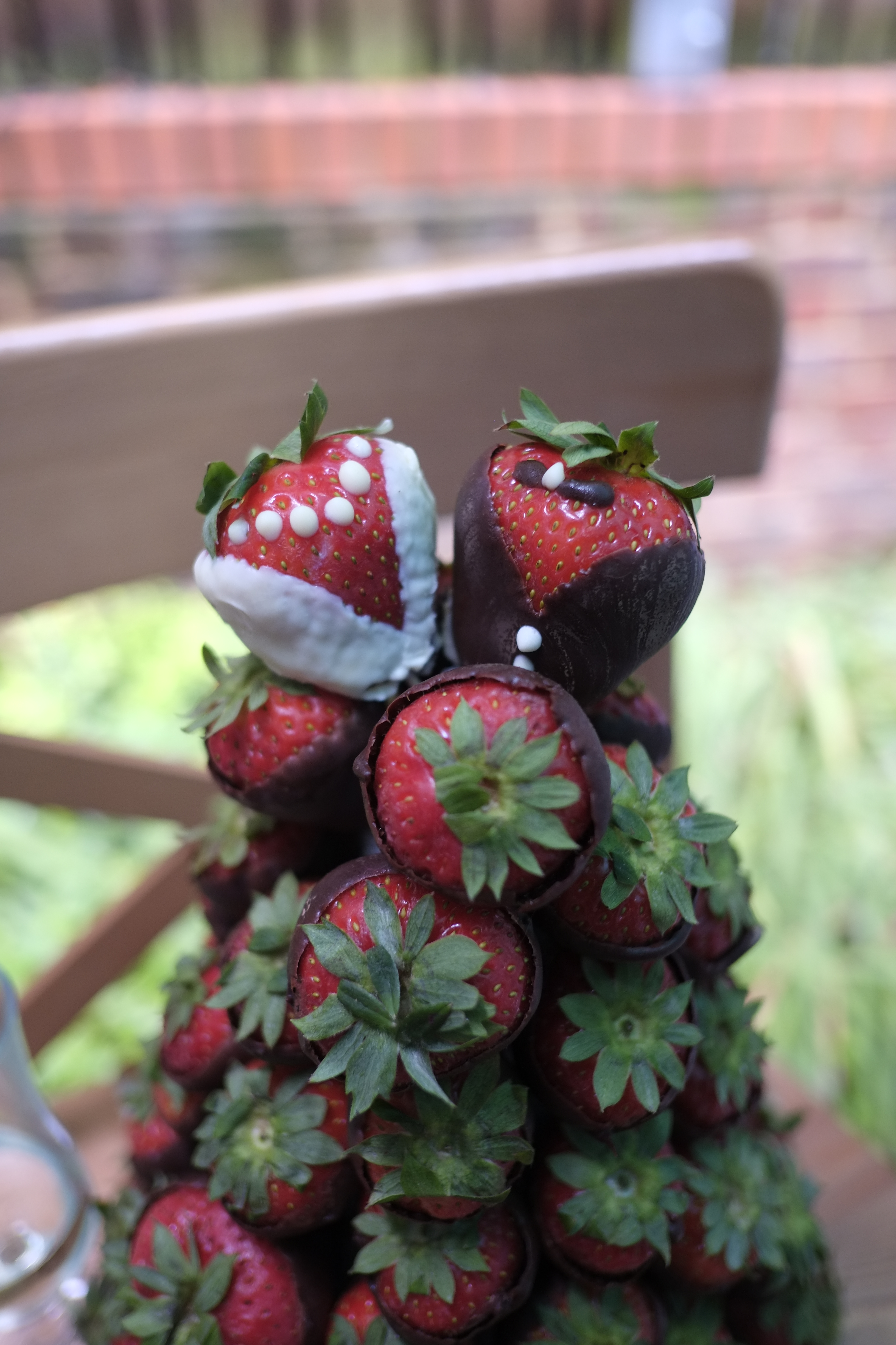 We wanted a light dessert for our wedding lunch as we knew a massive dinner was coming in the evening, but I still wanted some wow factor and fruits and chocolate! A chocolate fondue would not have been very practical for 20 guests, especially if I wanted to keep my dress sparkly white!